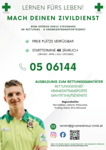 HIER finden Sie die Informationen zur Ausbildung zum Rettungssanitäter des Vereins des Grünen Kreuzes